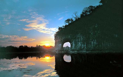 從深圳北乘車至桂林,我們第一站來到訾洲公園。如果僅僅看訾洲公園的名字,或許都會覺得只是一個小小的公園,但是當大家得知這個公園之中可以最佳角度欣賞全國聞名的象鼻山,都早就按捺不住興奮地心情,一個個都飛奔至最佳觀賞點,似乎都忘記了身后的講解員。象鼻山顧名思義形如大象,最為特別的是象鼻山的鼻子,真的很像是一只大象站在河中間喝水。象鼻山原名漓山,位于廣西區(qū)桂林市內桃花江與漓江匯流處,山因酷似一只站在江邊伸鼻豪飲漓江甘泉的巨象而得名,被人們稱為桂林山水的象征。