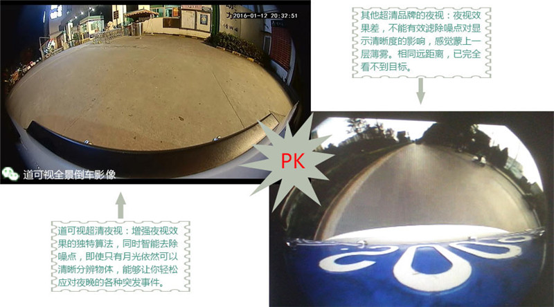供證據(jù),行車記錄等于白裝了。而道可視360度全景擁有四路超清攝像頭,每個攝像頭都擴(kuò)大了通光的光圈,在夜晚能夠捕獲更清晰圖像。在微弱星光下,利用增