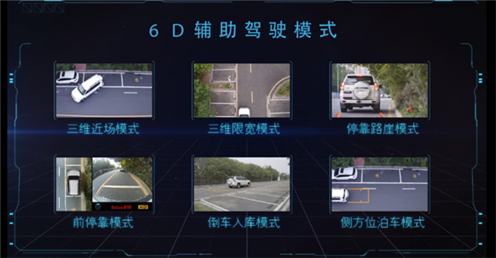 ◆6D輔助駕駛模式。道可視在2018年新增的6D輔助駕駛模式,包含三維近場(chǎng)模式、三維限寬模式、停靠路崖模式、前??磕J?、倒車(chē)入庫(kù)模式、側(cè)方位泊車(chē)模式,徹底屏棄掉市場(chǎng)上的其他3D模式,用簡(jiǎn)單方便實(shí)用的功能,輔助駕駛者順利通過(guò)行車(chē)障礙、過(guò)限寬、極限停靠路崖等多種復(fù)雜多變的行車(chē)環(huán)境及道路。