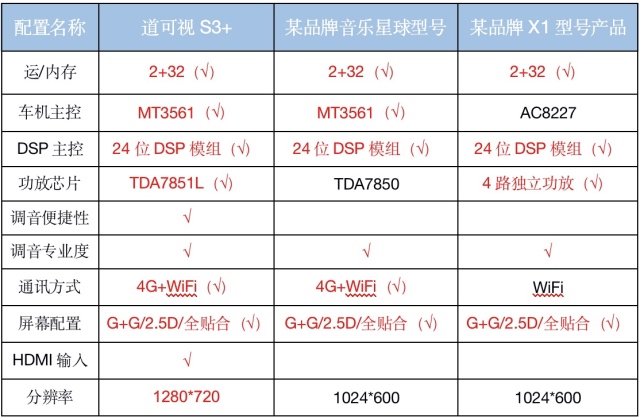 那么,道可視S3+音樂車機到底有什么料呢?空口無憑,小編直接拿它和業(yè)內(nèi)同屬高端配置的其他品牌產(chǎn)品進行對比。