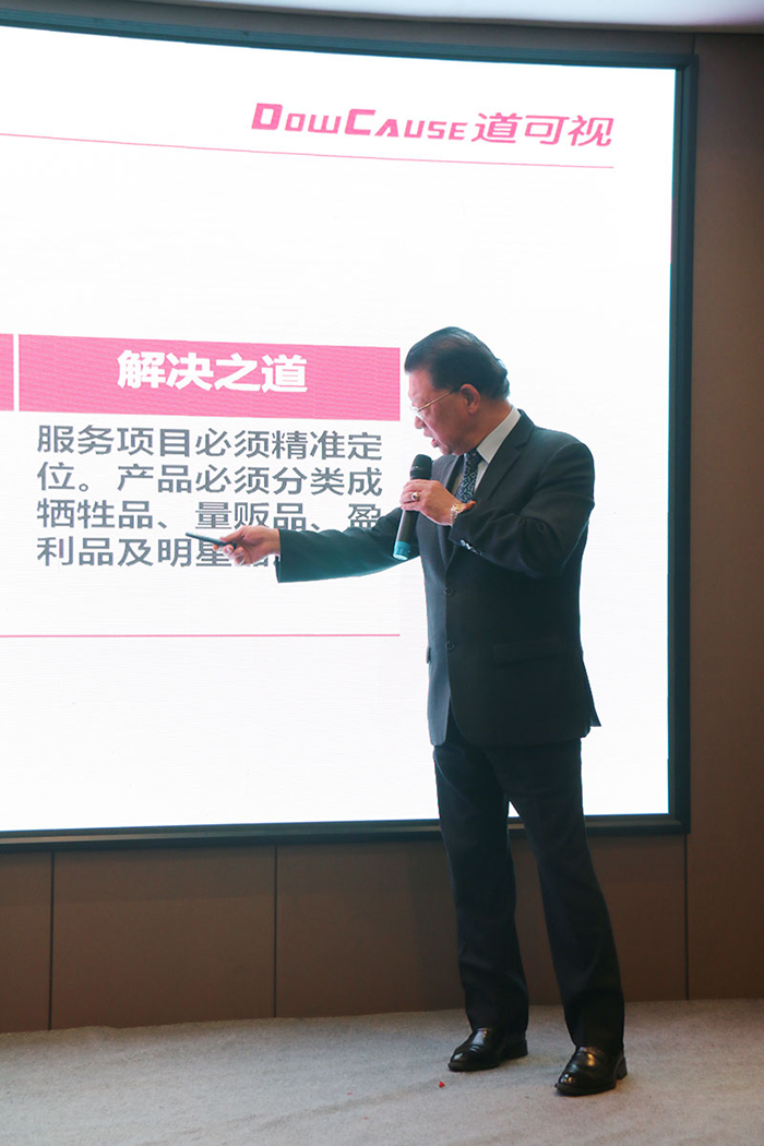 針對當(dāng)下終端門店運(yùn)營者所面臨的種種困惑,蔡老師也提出了解決之道,他指出門店有服務(wù)項(xiàng)目必須精準(zhǔn)定位,產(chǎn)品必須分類成犧牲品、量販品、盈利及明星產(chǎn)品,同時(shí),如果說門店有20%的員工劣根性很強(qiáng),無論如何都無法改變,老板就必須使出殺手锏,不能再將這樣的員工留在店內(nèi)等等。